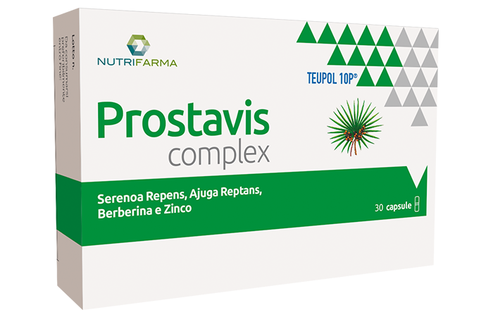 Prostavis Complex è un integratore alimentare che contiene serenoa utile per favorire la fisiologica funzionalità della prostata e delle vie urinarie, ajuga reptans e zinco che contribuisce alla protezione delle cellule dallo stress ossidativo e al normale metabolismo degli acidi grassi.